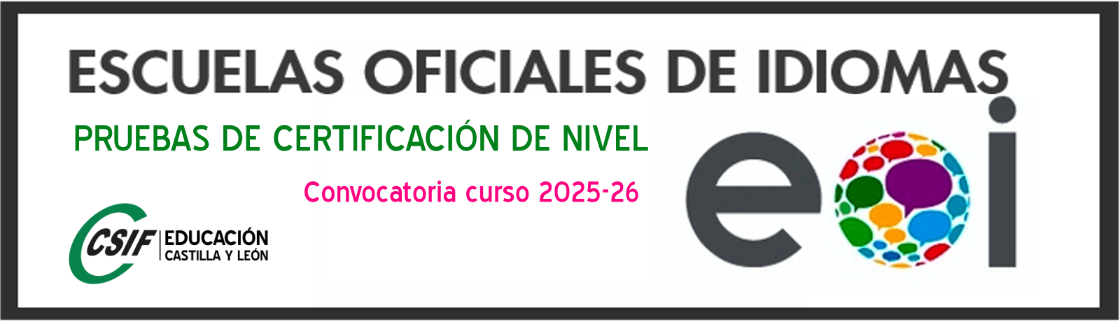 EOI. Pruebas de certificación de los niveles básico, intermedio y avanzado. Curso 2025-2026. Régimen libre y oficial. BOCYL 24/02/2026.