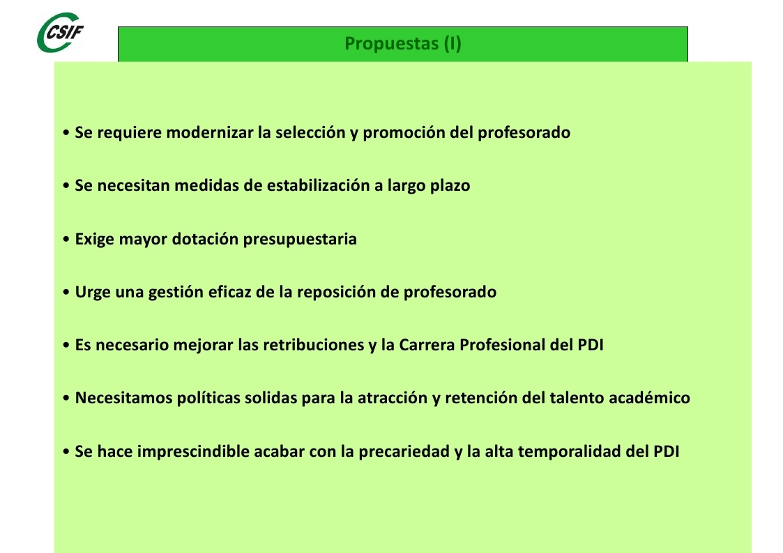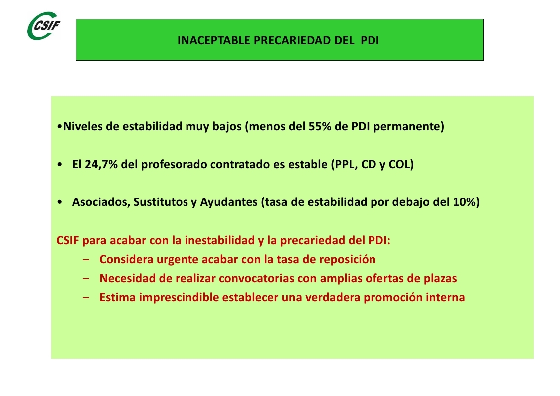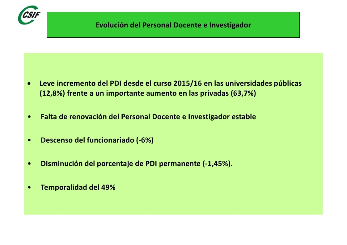 Estado del PDI de las universidades públicas.