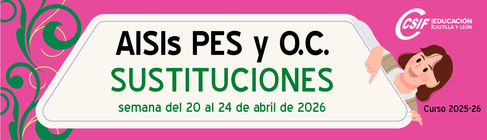 Interinos PES y otros cuerpos: Curso 2025-2026. AISI semana del 20 al 24 de abril 2026. Sustituciones.
