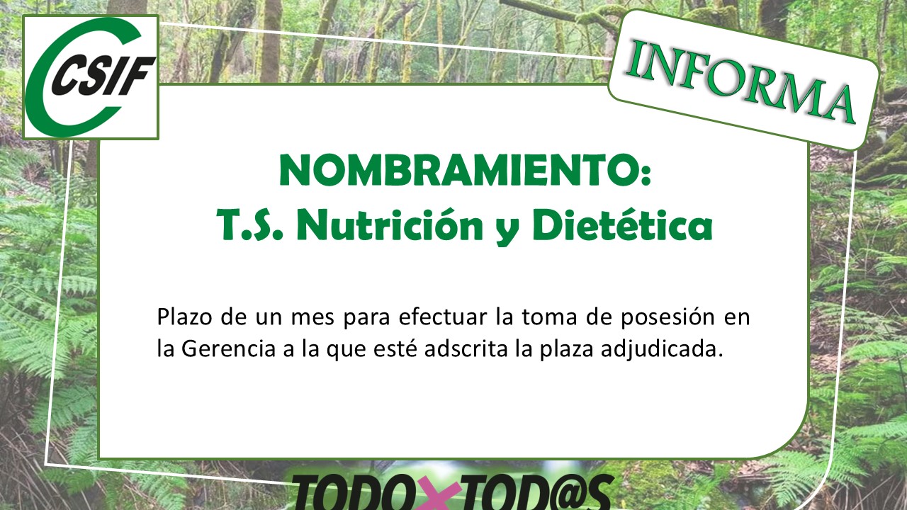 Nombramiento SACYL: T.S. Nutrición y Dietética