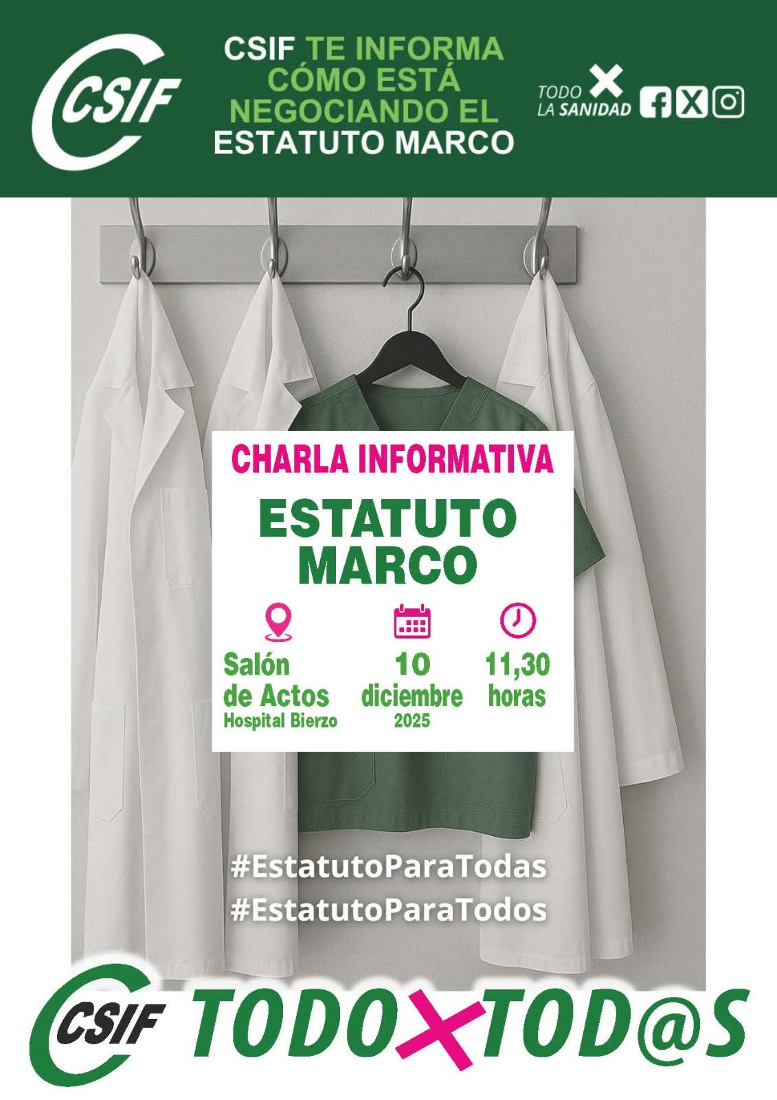Ayer, 10 de diciembre de 2025, Enrique Vega, Presidente Autonómico de Sanidad de CSIF estuvo en el Bierzo explicando las reivindicaciones y actuaciones del sindicato respecto al nuevo Estatuto Marco.
