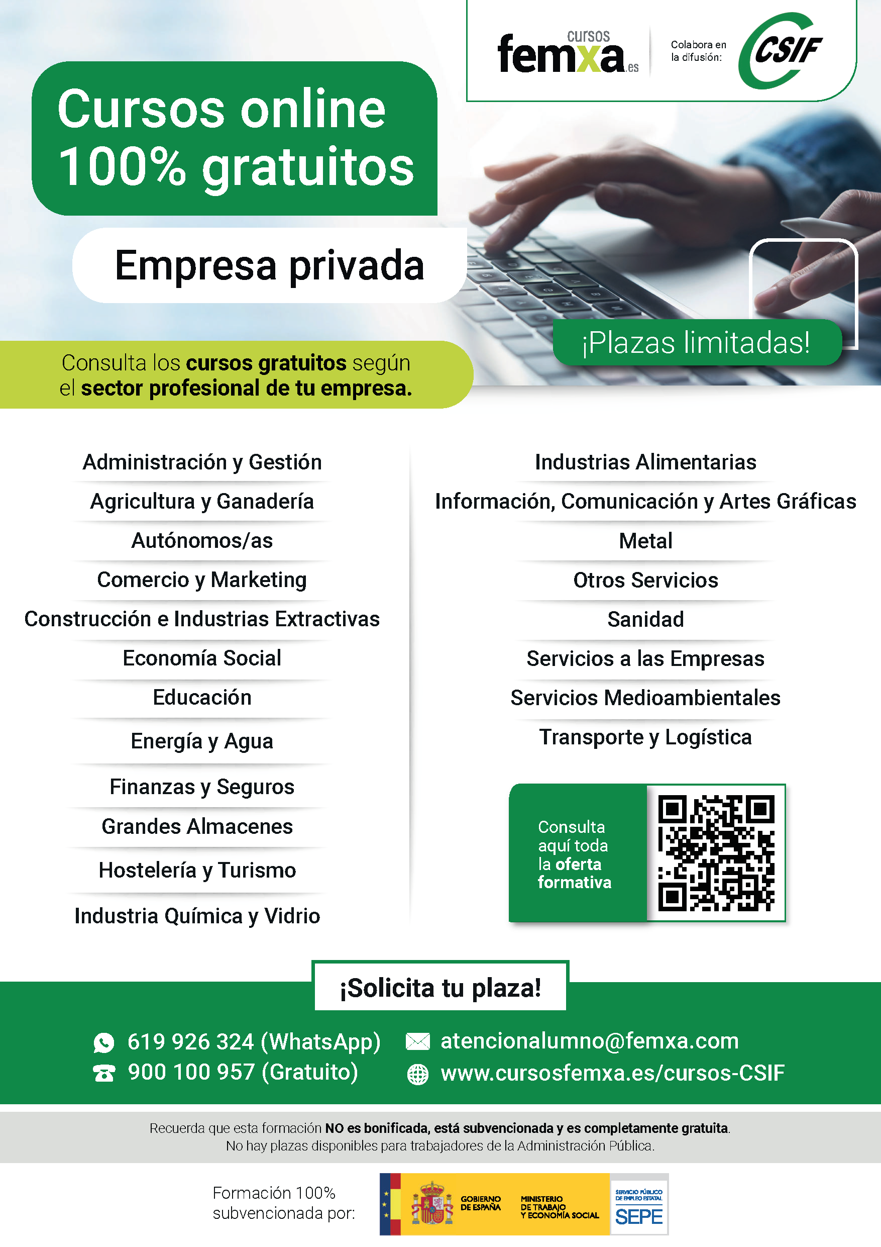 Cursos FEMXA CSIF Madrid Empresa Privada online 100% gratuitos