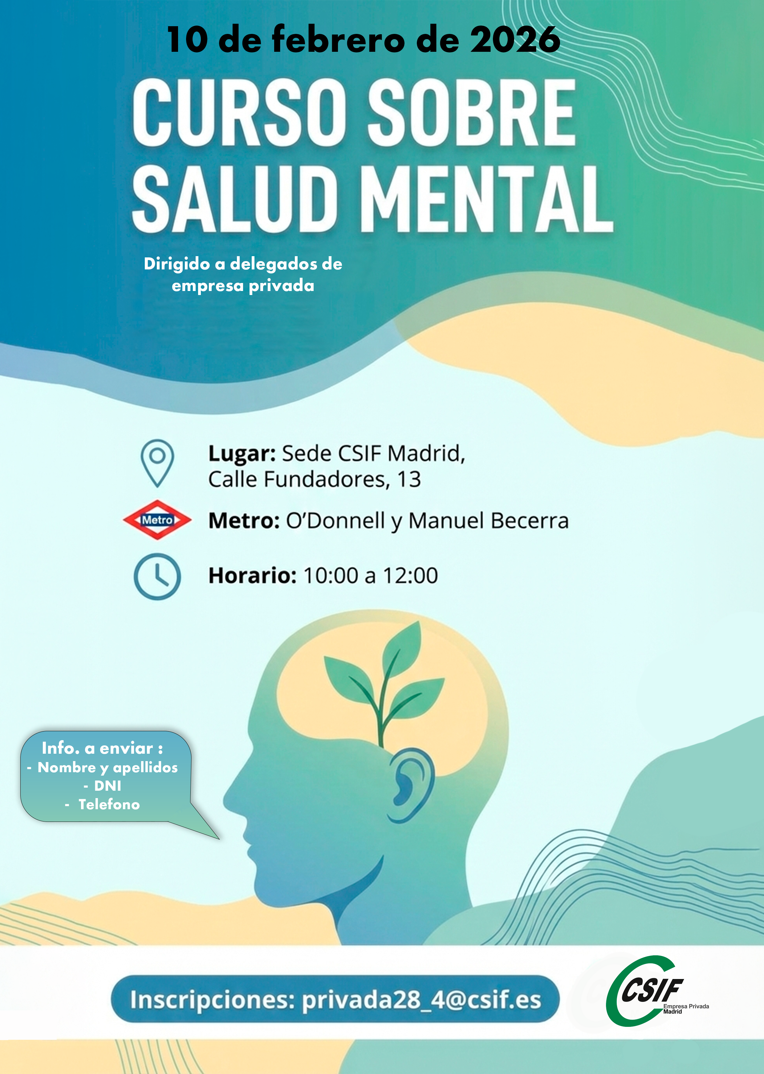 Para inscribirse mandad la información indicada al correo electrónico: privada28_4@csif.es antes del 30 de enero de 2026.