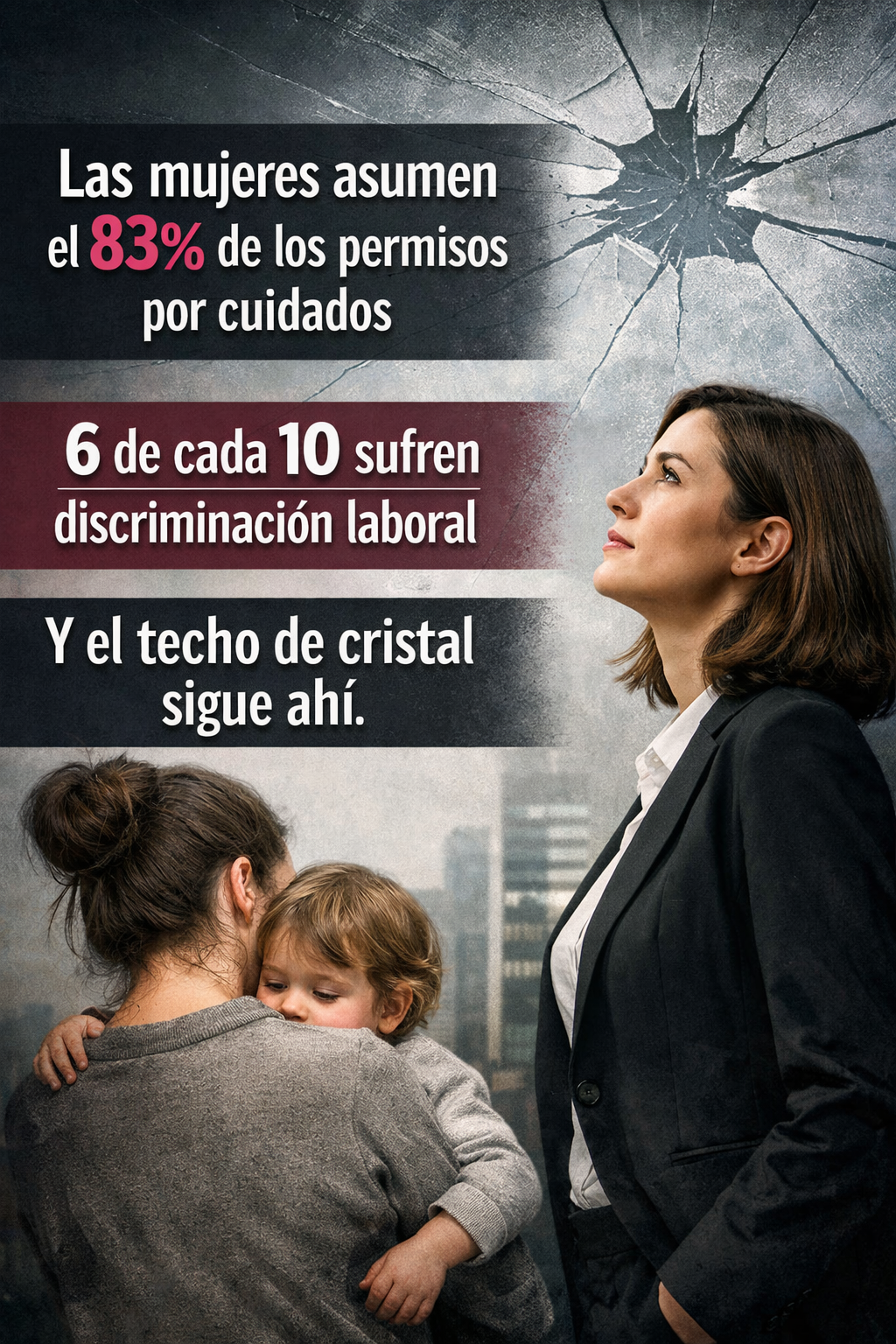 Las mujeres asumen el 83% de permisos por cuidados, 6 de cada 10 sufren discriminación y el techo de cristal sigue ahí.