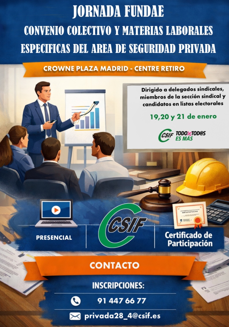 🔐 CSIF Formación te invita a participar en la Jornada FUNDAE sobre Convenio Colectivo y materias laborales específicas del área de Seguridad Privada.