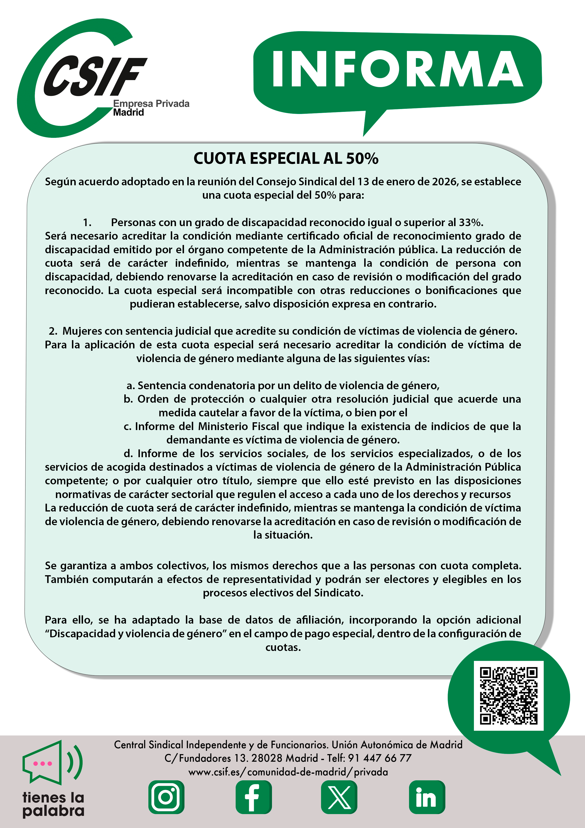 CUOTA ESPECIAL AL 50% CSIF MADRID