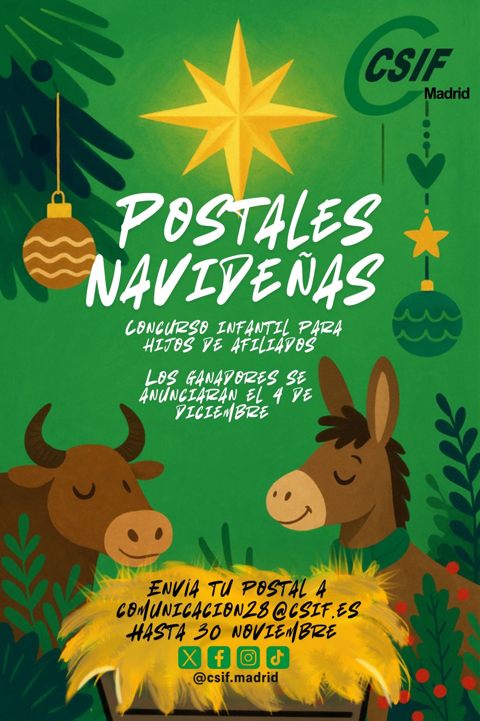 CSIF Madrid tiene el placer de invitar a todos los hijos e hijas de nuestros afiliados, con edades comprendidas entre los 3 y 12 años, a participar en nuestro Concurso Infantil de Postales Navideñas 2025