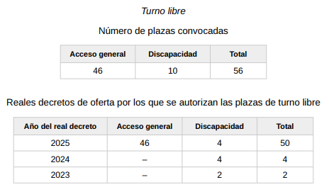 • Al Real Decreto 651/2025, de 15 de julio, por el que se aprueba la oferta de empleo público correspondiente al ejercicio 2025 (BOE de 16 de julio), corresponden 22 plazas destinadas a la especialidad de Juristas y 28 plazas a la especialidad de Psicólogos/ Psicólogas. De las plazas indicadas se reservarán 2 plazas a la especialidad de Juristas, reservadas para ser cubiertas por personas con discapacidad y 2 plazas a la especialidad de Psicólogos/Psicólogas, reservadas para ser cubiertas por personas con discapacidad.