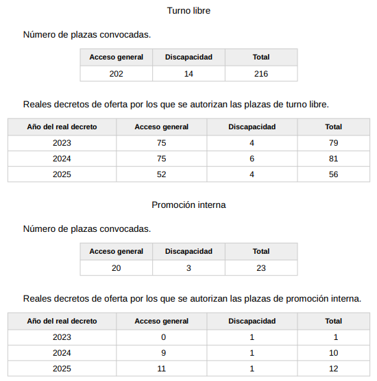 En concreto, se convoca proceso selectivo para cubrir doscientas dieciséis (216) plazas de acceso libre y veintitrés (23) de promoción interna en el Cuerpo de Ingenieros de Caminos, Canales y Puertos del Estado, código 1000.