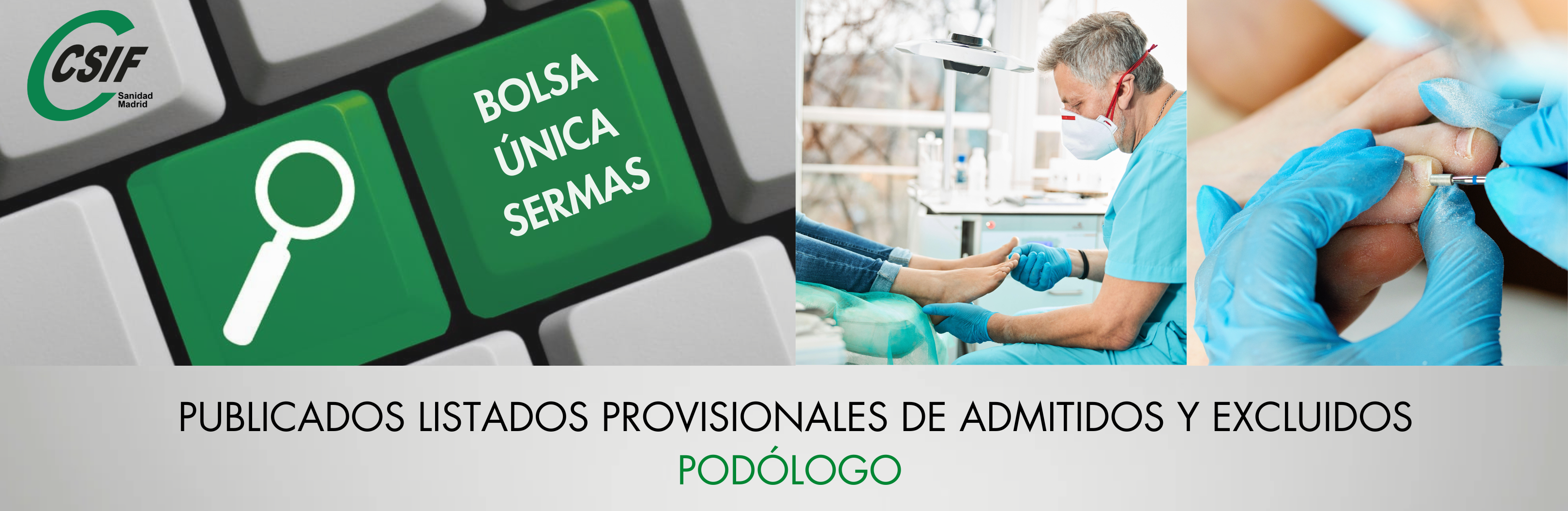 Listado provisional de admitidos y excluidos Bolsa Única categoría Podólogo