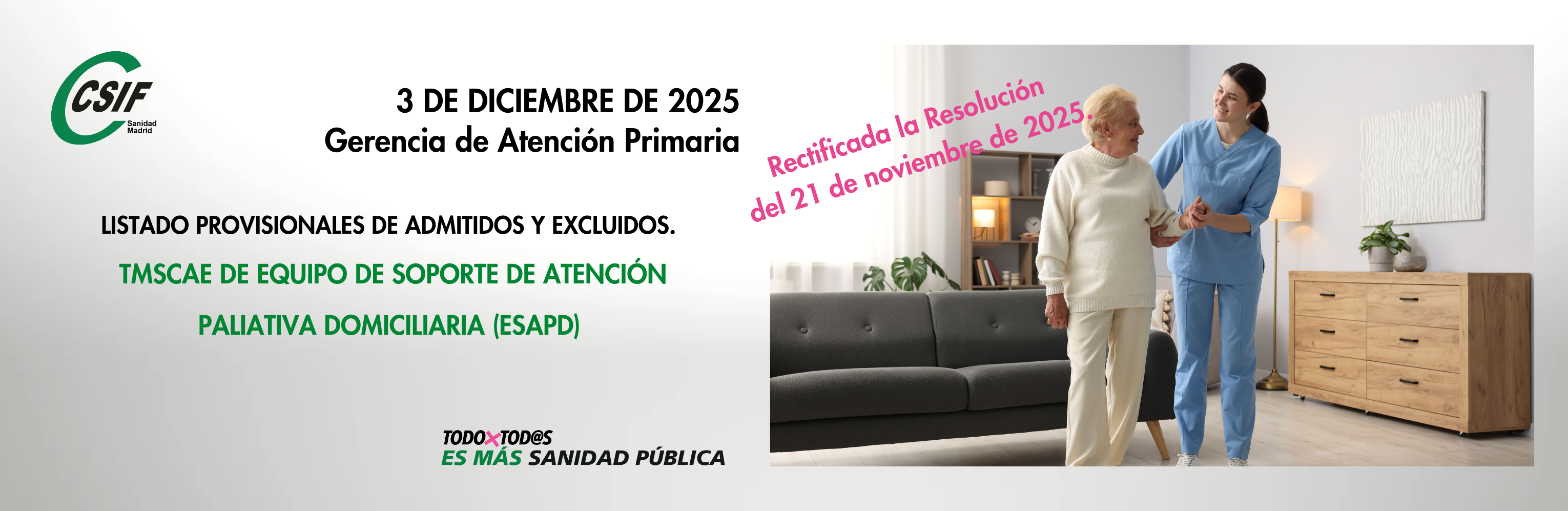 Listado definitivo de admitidos y excluidos. TCAES de equipo de Soporte de Atención Paliativa Domiciliaria (ESAPD)