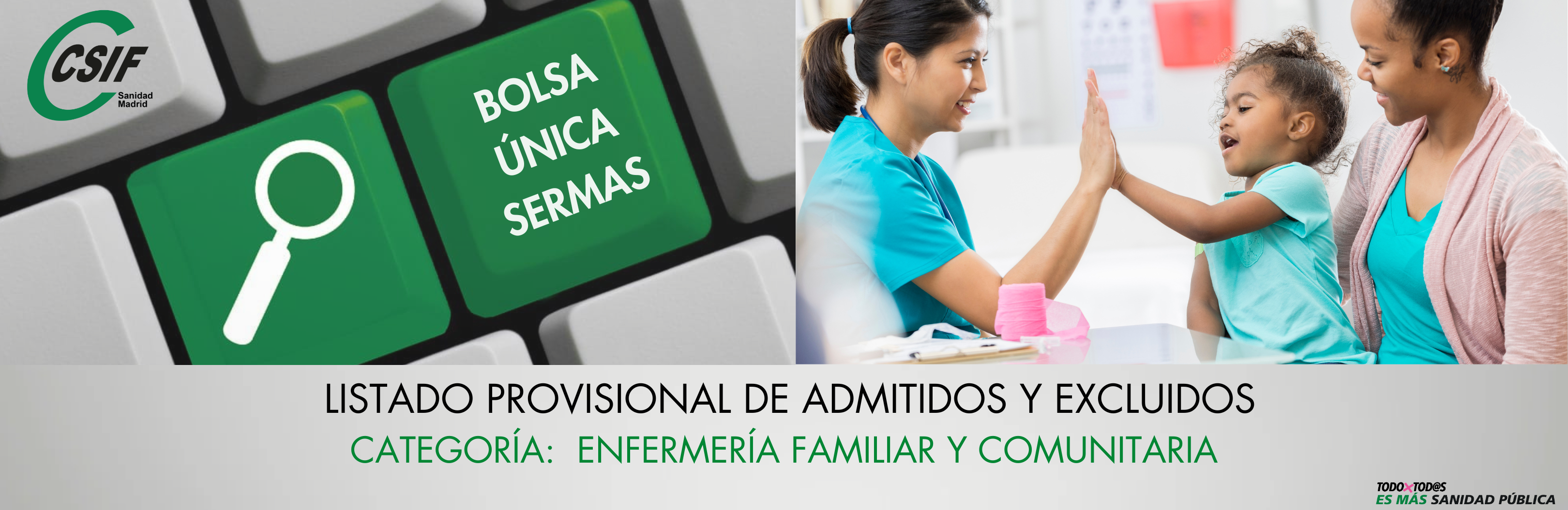 Listado provisional de admitidos y excluidos en la Bolsa Única SERMAS