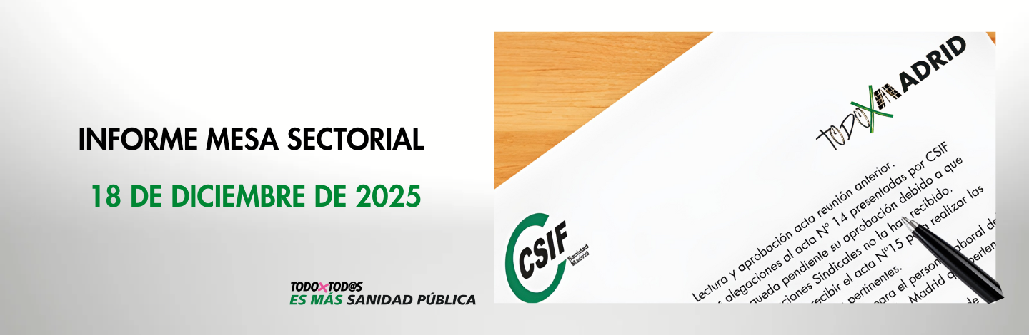 Se ha celebrado la Mesa Sectorial de Sanidad Madrid. En la cual, se han tratado los siguientes puntos: