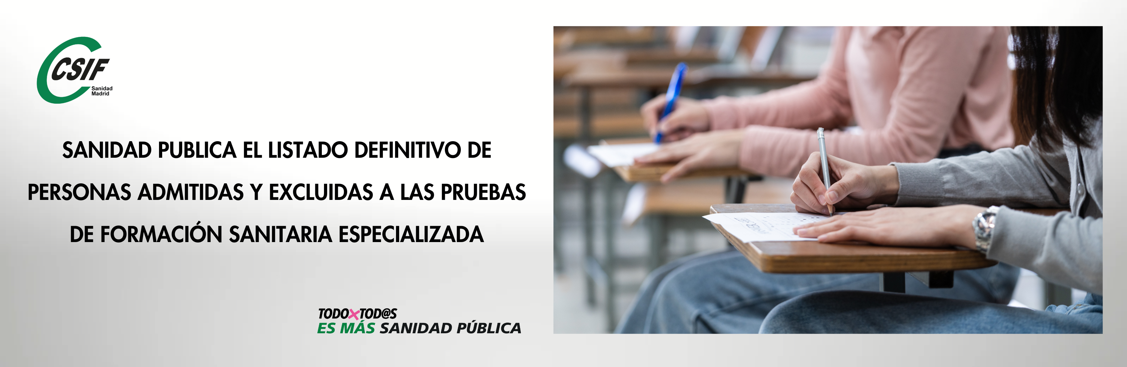 Sanidad publica el listado definitivo de personas admitidas y excluidas a las pruebas de Formación Sanitaria Especializada
