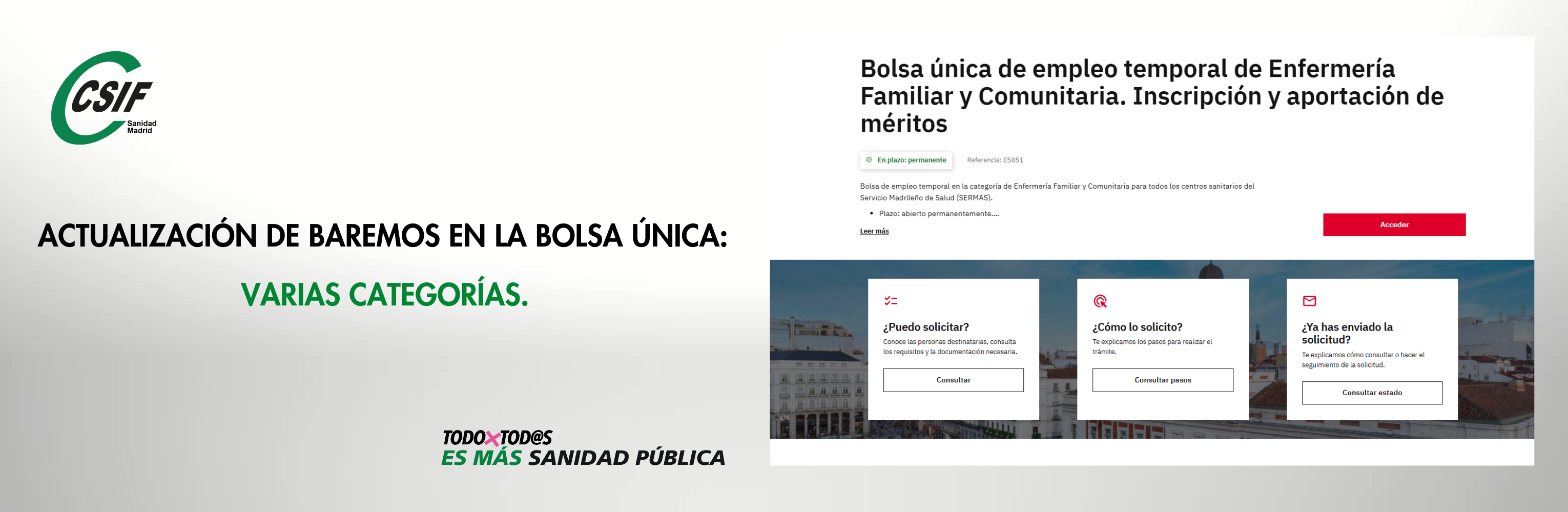 Actualización de baremos en la Bolsa Única: En varias categorías.