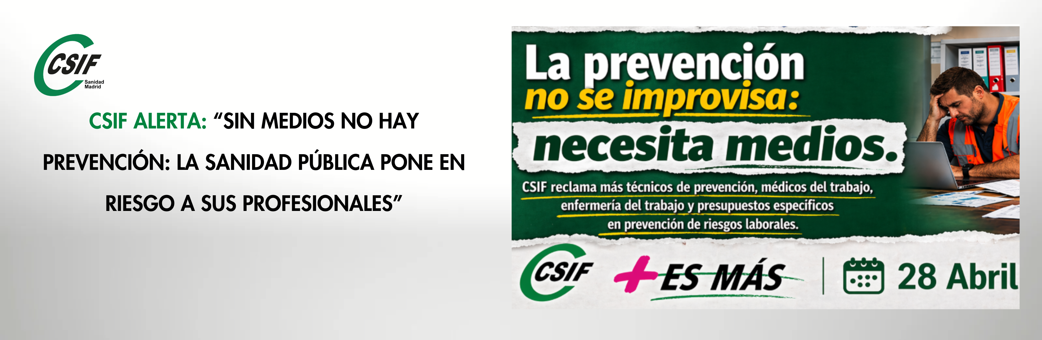 En el Día Mundial de la Seguridad y Salud en el Trabajo, 28 de abril de 2026. La prevención no se improvisa: necesita medios. La grieta invisible de la sanidad pública: profesionales al límite en un sistema que no protege.