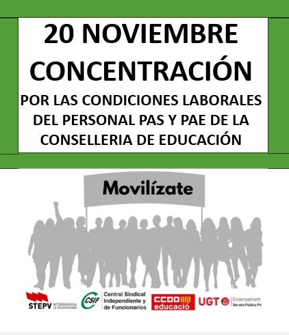 📢📢 20 DE NOVIEMBRE A LAS 18H CONCENTRACIÓN, POR LA SITUACIÓN LABORAL DEL PERSONAL DE ATENCIÓN EDUCATIVA Y PERSONAL DE APOYO Y SERVICIOS (PAS Y PAE)