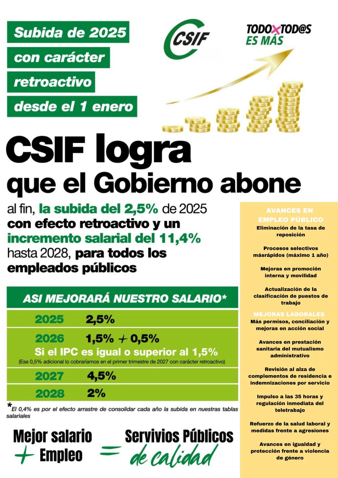 Ademas del abono de los atrasos, en enero las nóminas subirán un 4% y tan solo un año después, llegaremos al 9%; para culminar con el 11,4% acumulado en 2028.