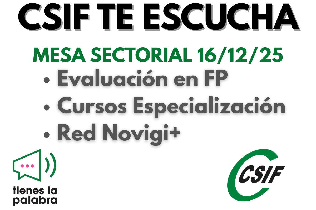 MS 16-12-2025.-Convocada mesa sectorial para tratar: Evaluación en FP, Currículos cursos especialización y Red Novigi+