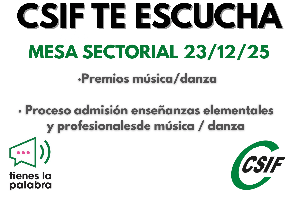 MS 23-12-2025.-Convocada mesa sectorial para tratar: Premios música/danza y Proceso admisión enseñanzas elementales y profesionalesde música / danza