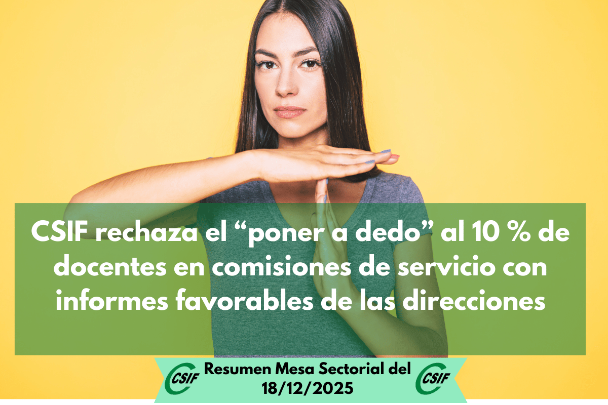 CSIF rechaza el “poner a dedo” al 10 % de docentes en comisiones de servicio con informes favorables de las direcciones