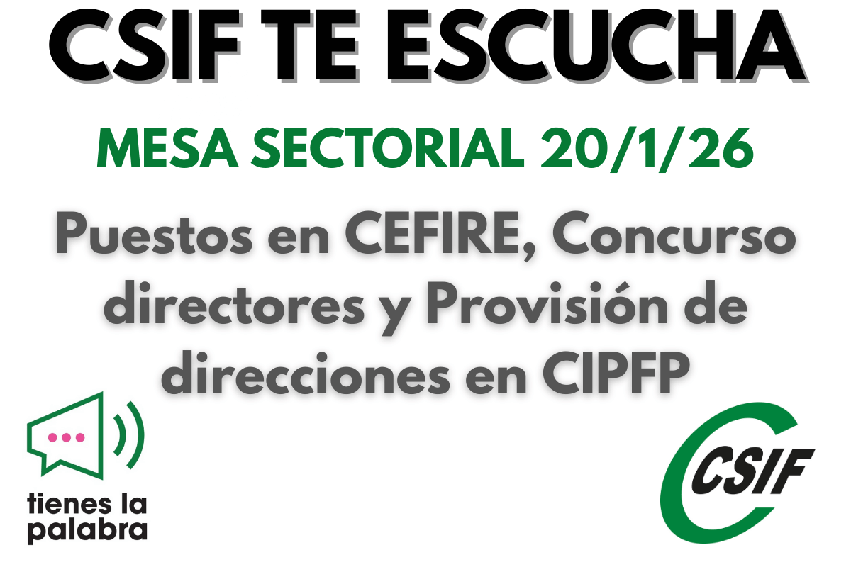 MS 20-1-2026.-Convocada mesa sectorial para tratar: Puestos en CEFIRE, Concurso directores y Provisión de direcciones en CIPFP