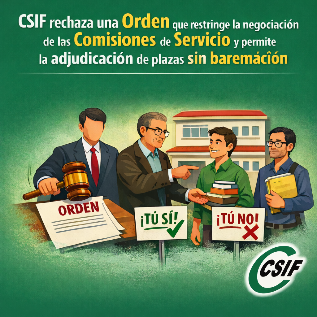 CSIF rechaza una Orden que restringe la negociación de las Comisiones de Servicio y permite la adjudicación de plazas sin baremación.