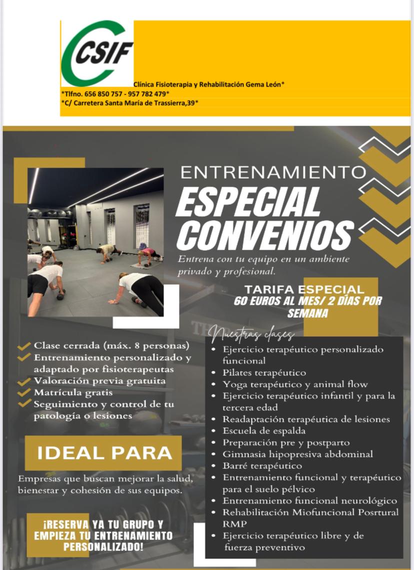 Entrenamiento especial para afiliados de CSIF, del nuevo centro deportivo, Therafit Gema León, diseñada para mejorar la salud, el bienestar y la cohesión de los equipos de trabajo.