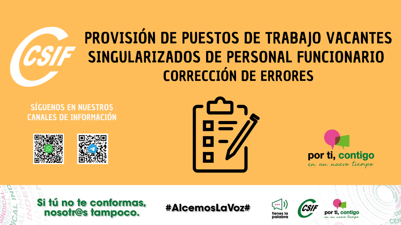 CONCURSO DE TRASLADO DE PUESTOS SINGULARIZADOS PUBLICACIÓN - CORRECCIÓN DE ERRORES.
