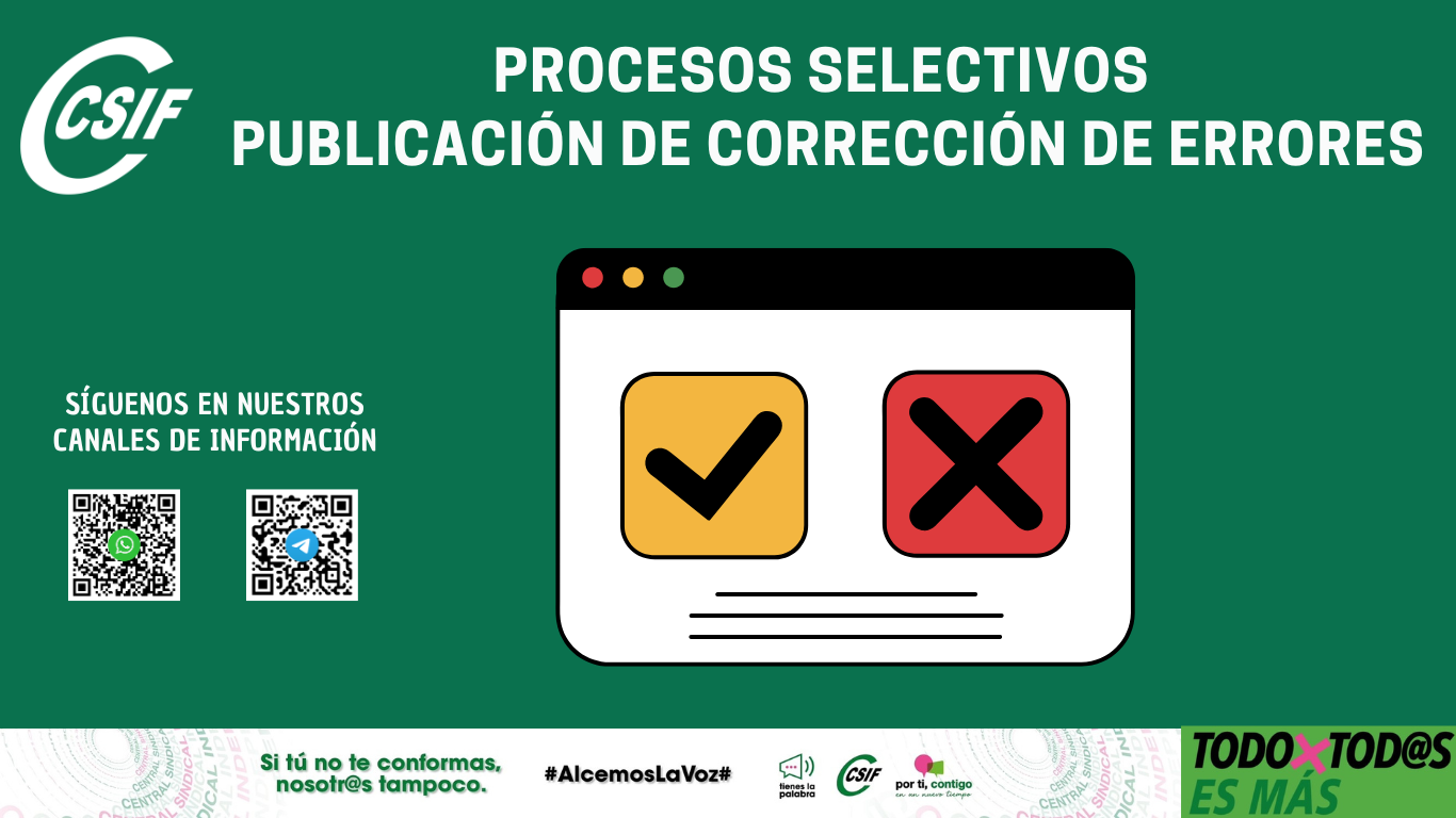 PROCESOS SELECTIVOS PUBLICACIÓN DE CORRECCIÓN DE ERRORES