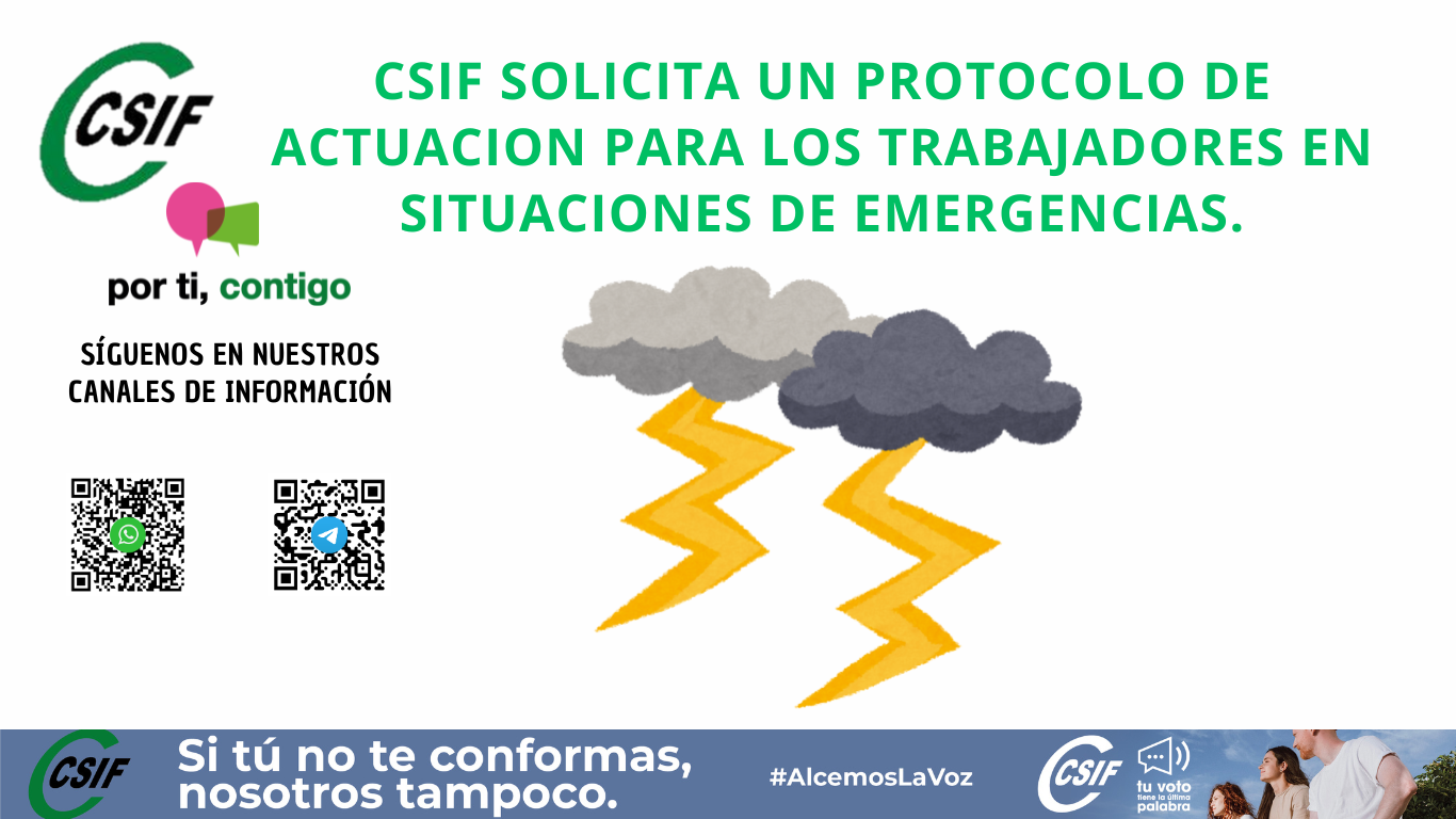 CSIF ha solicitado, mediante escrito dirigido a la Consejería de Hacienda y Administración Pública, la elaboración de un Protocolo de Actuación ante situaciones de emergencia como la decretada para el día de hoy por las autoridades competentes.