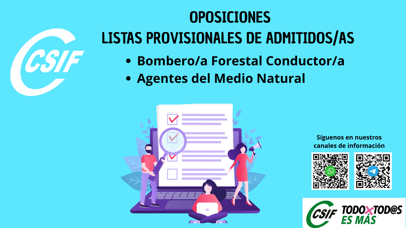 OPOSICIONES – LISTAS PROVISIONALES. Bombero/a Forestal Conductor/a - Agentes del Medio Natural.