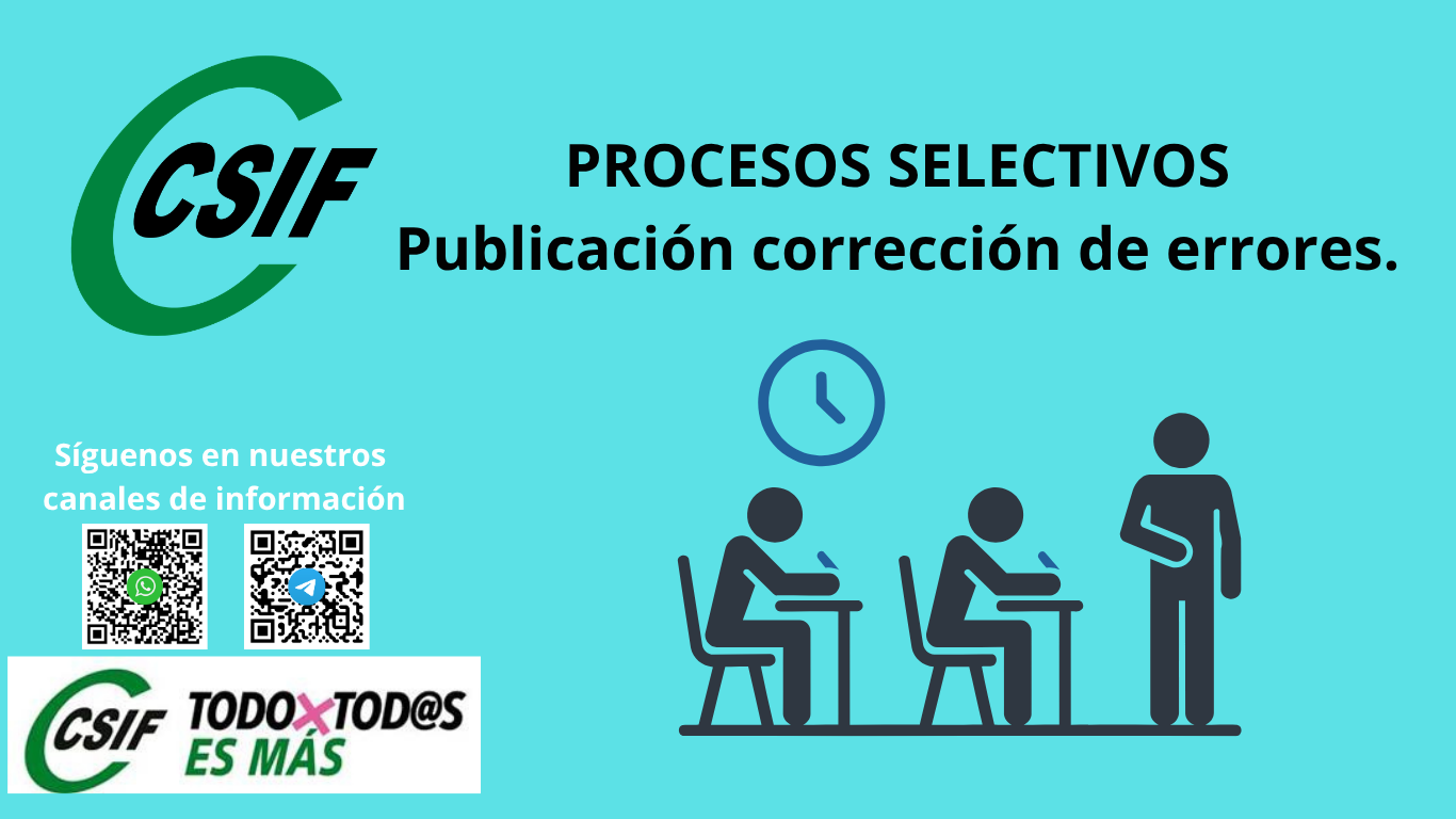 PROCESOS SELECTIVOS PUBLICACIÓN DE CORRECCIÓN DE ERRORES