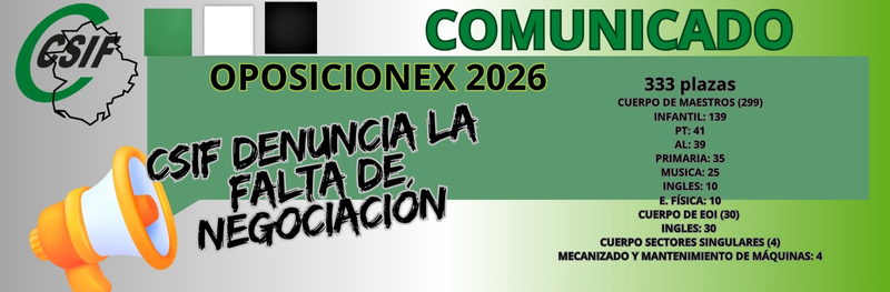 OPOSICIONEX 2026. PLAZAS OFERTADAS POR LA ADMINISTRACIÓN DE FORMA UNILATERAL.