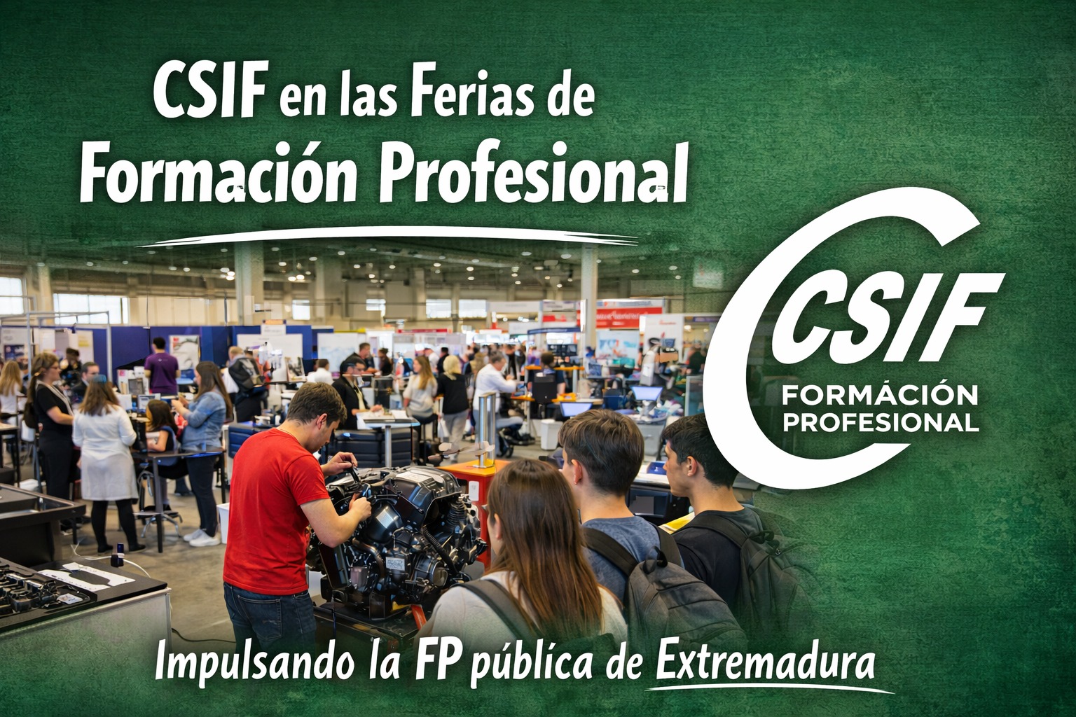 CSIF visita las ferias de Formación Profesional en Extremadura. Reúnen a centros educativos, alumnado y empresas para mostrar la oferta de ciclos formativos y las salidas profesionales de la FP. En estos eventos participan numerosos institutos con talleres y demostraciones prácticas para orientar al alumnado sobre su futuro académico y laboral.