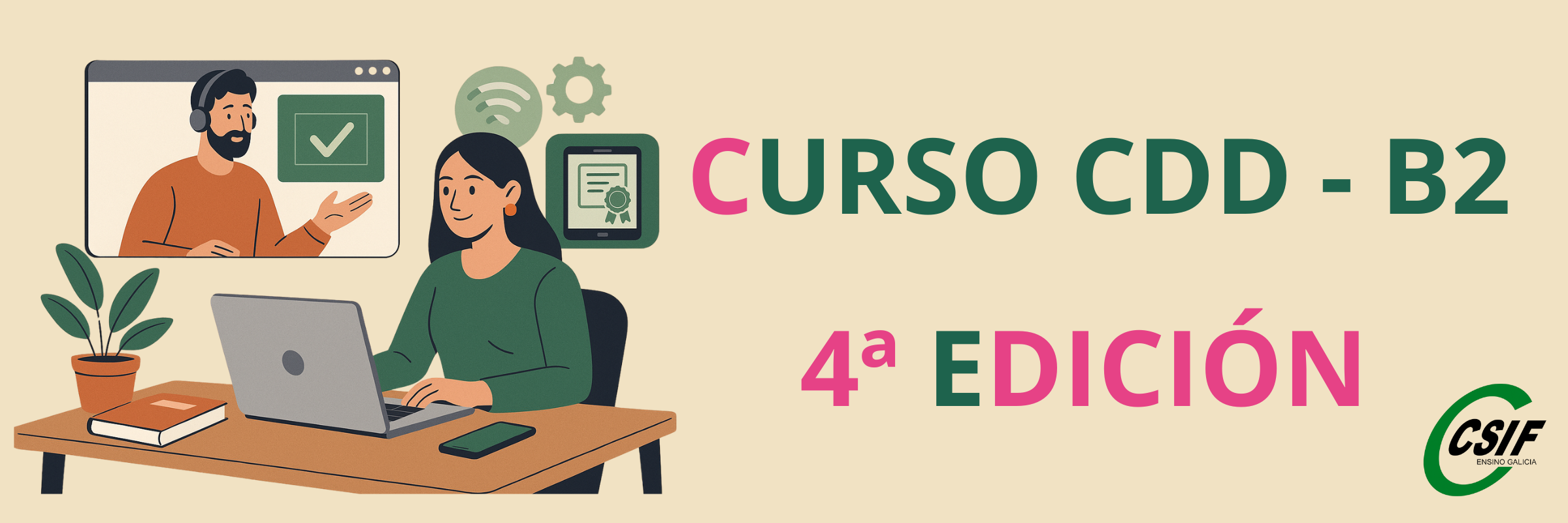 Oferta do Campus de Formación CSIF válida en Galicia. Curso homologado pola Consellería de Educación de Galicia con nivel B2 en Competencia Dixital, válido para concurso de traslados, sexenios, oposicións, etc.