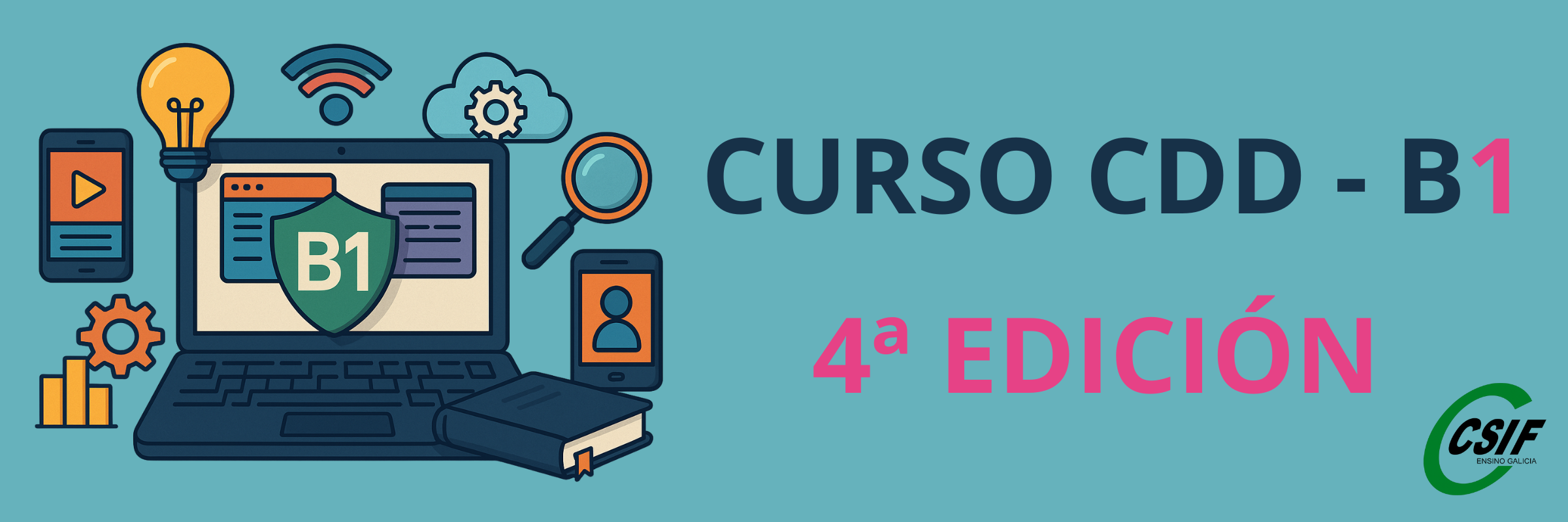Oferta do Campus de Formación CSIF válida en Galicia. Curso homologado pola Consellería de Educación de Galicia con nivel B1 en Competencia Dixital, válido para concurso de traslados, sexenios, oposicións, etc.
