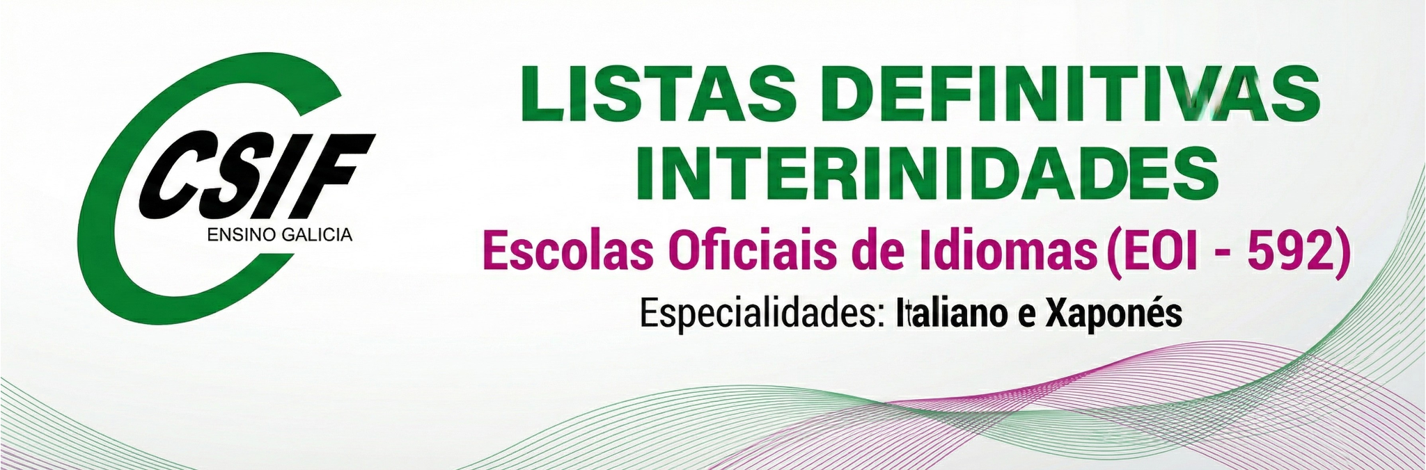 Hoxe, mércores 10 de decembro, publicouse no portal educativo a Resolución da Dirección Xeral de Centros e Recursos Humanos, pola que se aproba e publica a relación definitiva de persoas admitidas e excluídas e o baremo definitivo no procedemento para a elaboración das listas de interinidades e substitucións no corpo de profesores de escolas oficiais de idiomas (592) (código de procedemento ED003A).