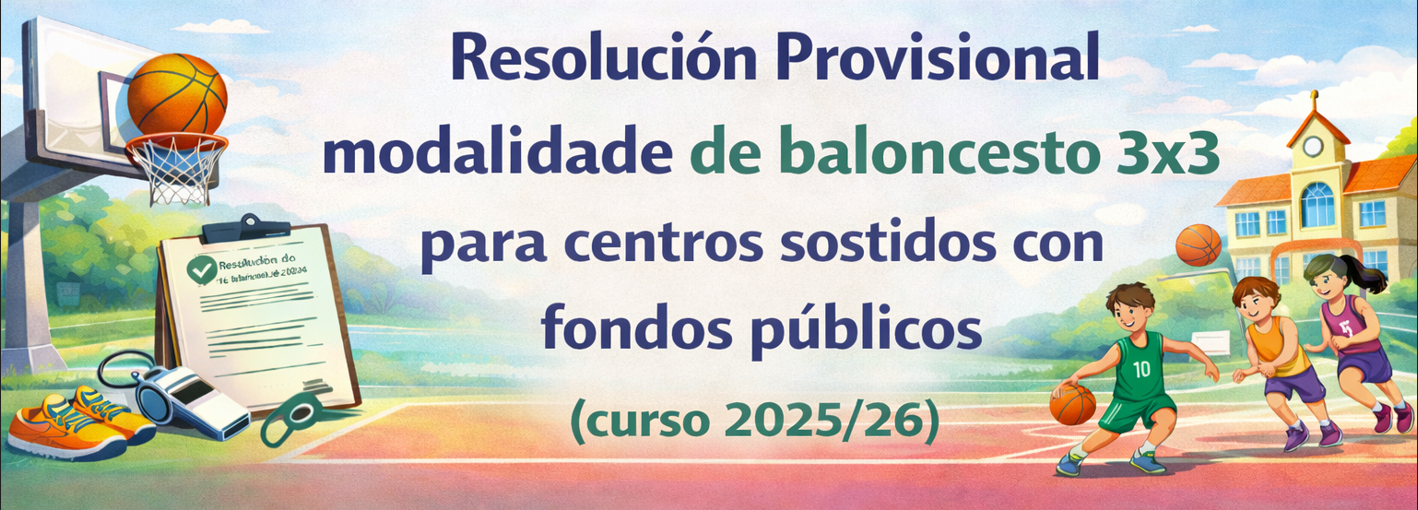 A Dirección Xeral de Ordenación e Innovación Educativa publicou a resolución provisional coa relación de centros admitidos no programa Baloncesto 3x3 para o curso 2025/26, así como a relación de centros suplentes e dous centros excluídos por non axustarse á tipoloxía de alumnado á que vai dirixida a convocatoria.