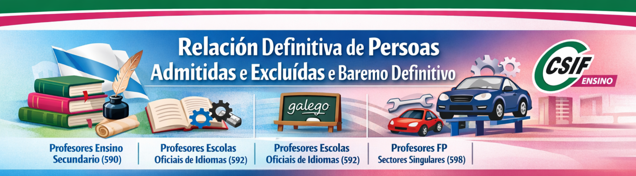 Información elaborada por CSIF Ensino Galicia a partir das publicacións oficiais da Consellería. Recoméndase revisar a documentación completa e presentar, de ser o caso, o recurso de reposición exclusivamente pola sede electrónica.