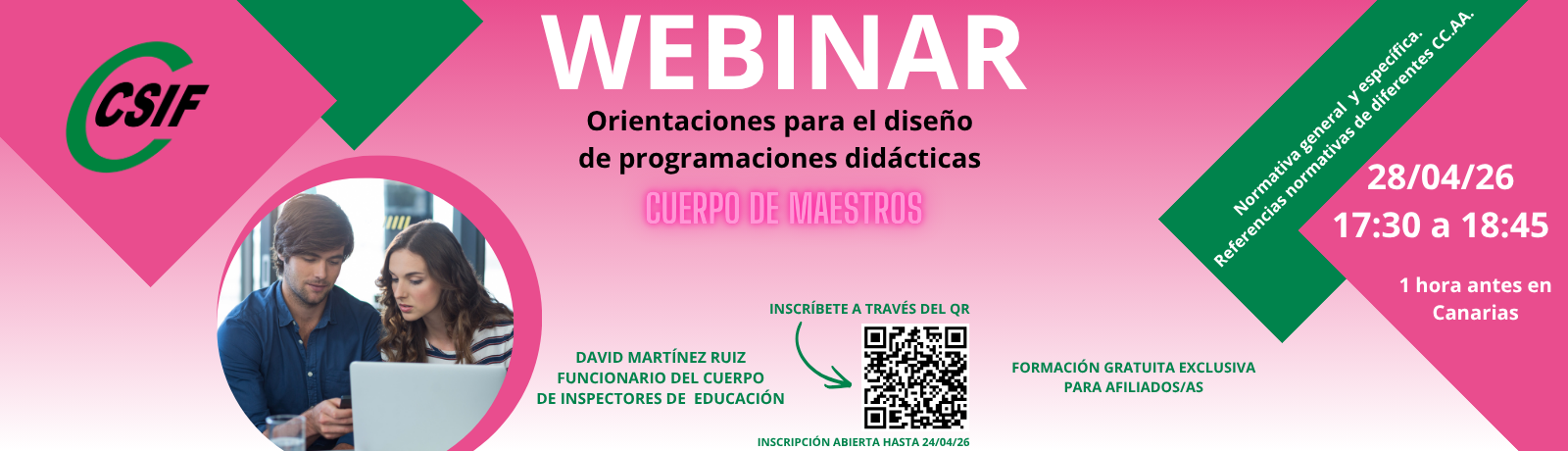 CSIF Nacional abre a inscrición nun webinar gratuíto e exclusivo para persoas afiliadas, centrado en claves prácticas para elaborar programacións didácticas.