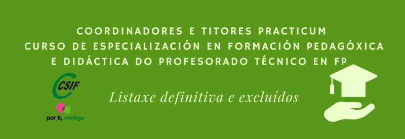 Publicación da listaxe definitiva de persoas coordinadoras e titoras para o desenvolvemento do prácticum correspondente ao curso de especialización en formación pedagóxica e didáctica do profesorado técnico en FP para o curso 2023/24