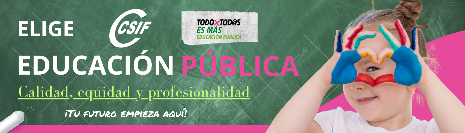 En definitiva, desde CSIF se anima a las familias a matricular a sus hijos e hijas en la red de centros públicos porque son un ejemplo de los valores democráticos, participativos y transparentes, pero que necesitan del nuevo alumnado para lograr seguir siendo referentes de una educación pública de calidad.