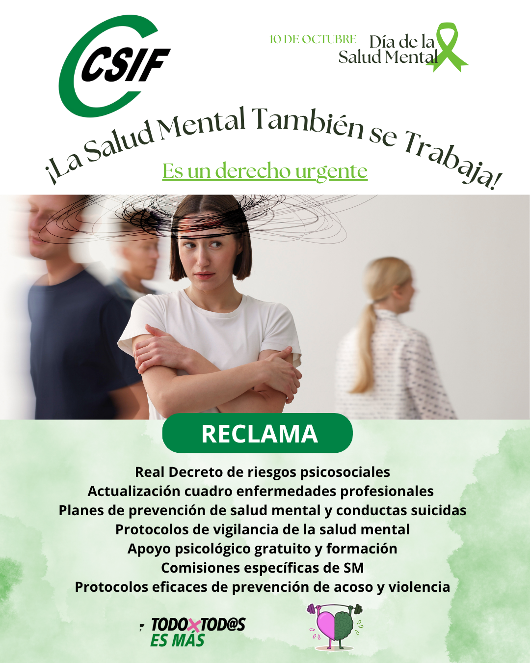10 Octubre 2025. Día Mundial de la Salud Mental con el lema: LA SALUD MENTAL TAMBIÉN SE TRABAJA.