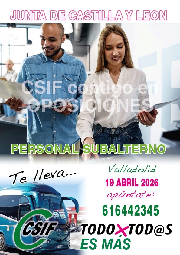 CSIF te lleva a Valladolid a tu examen de Personal Subalterno