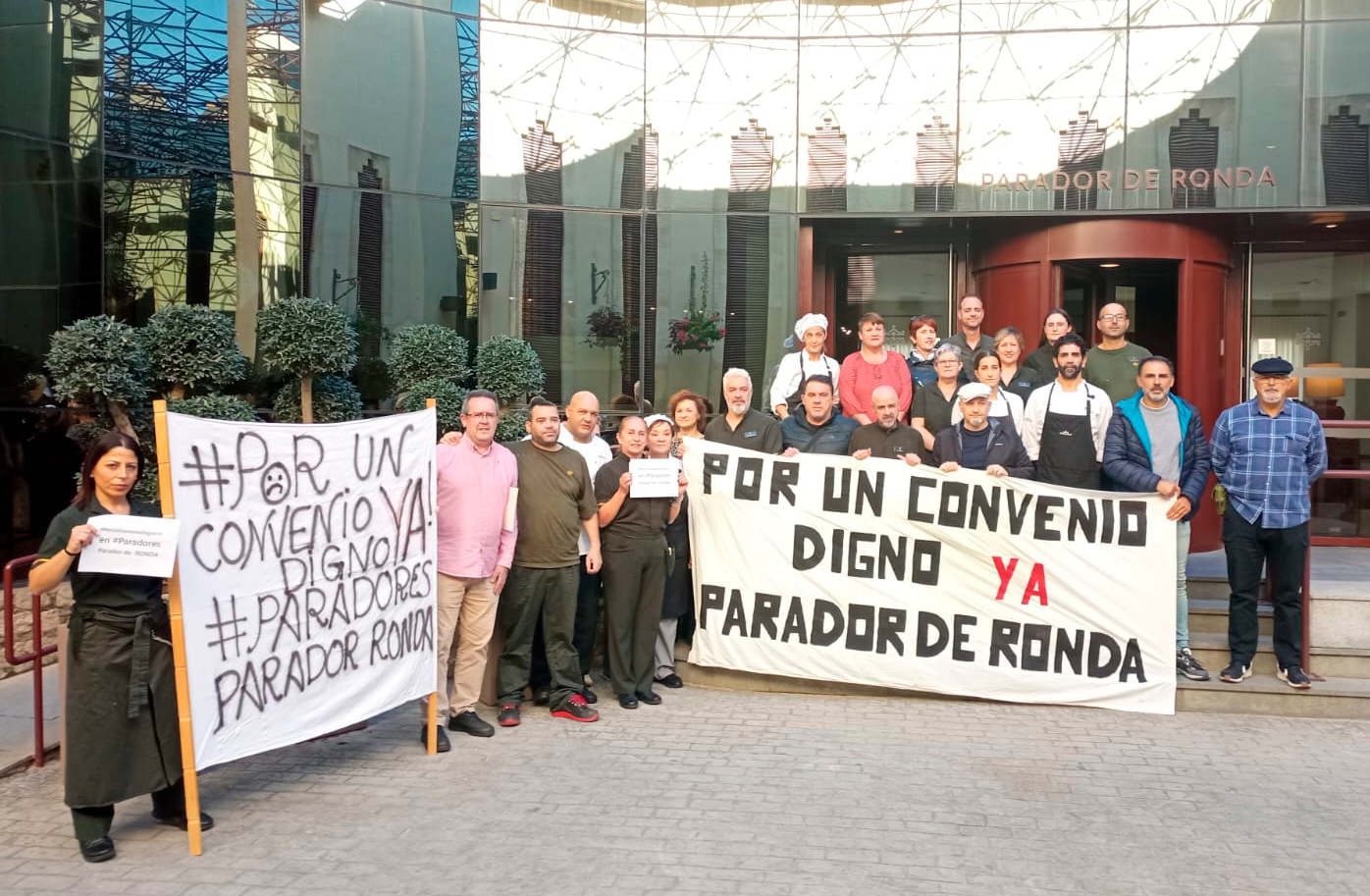 Este 7 de noviembre, las plantillas de los Paradores de Málaga han vuelto a concentrarse frente a las puertas de sus centros de trabajo en toda la provincia. Con esta nueva acción, buscan visibilizar la situación de abandono institucional y empresarial que arrastran desde hace más de cuatro años y antes de verse obligados a adoptar medidas más contundentes.