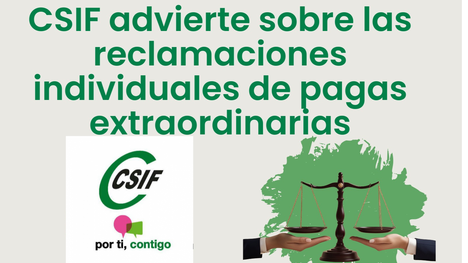En los últimos días se están promoviendo campañas para reclamar judicialmente el cobro íntegro de las pagas extraordinarias. CSIF quiere ser absolutamente claro: estas reclamaciones no son viables y suponen un riesgo real para quien las interponga.