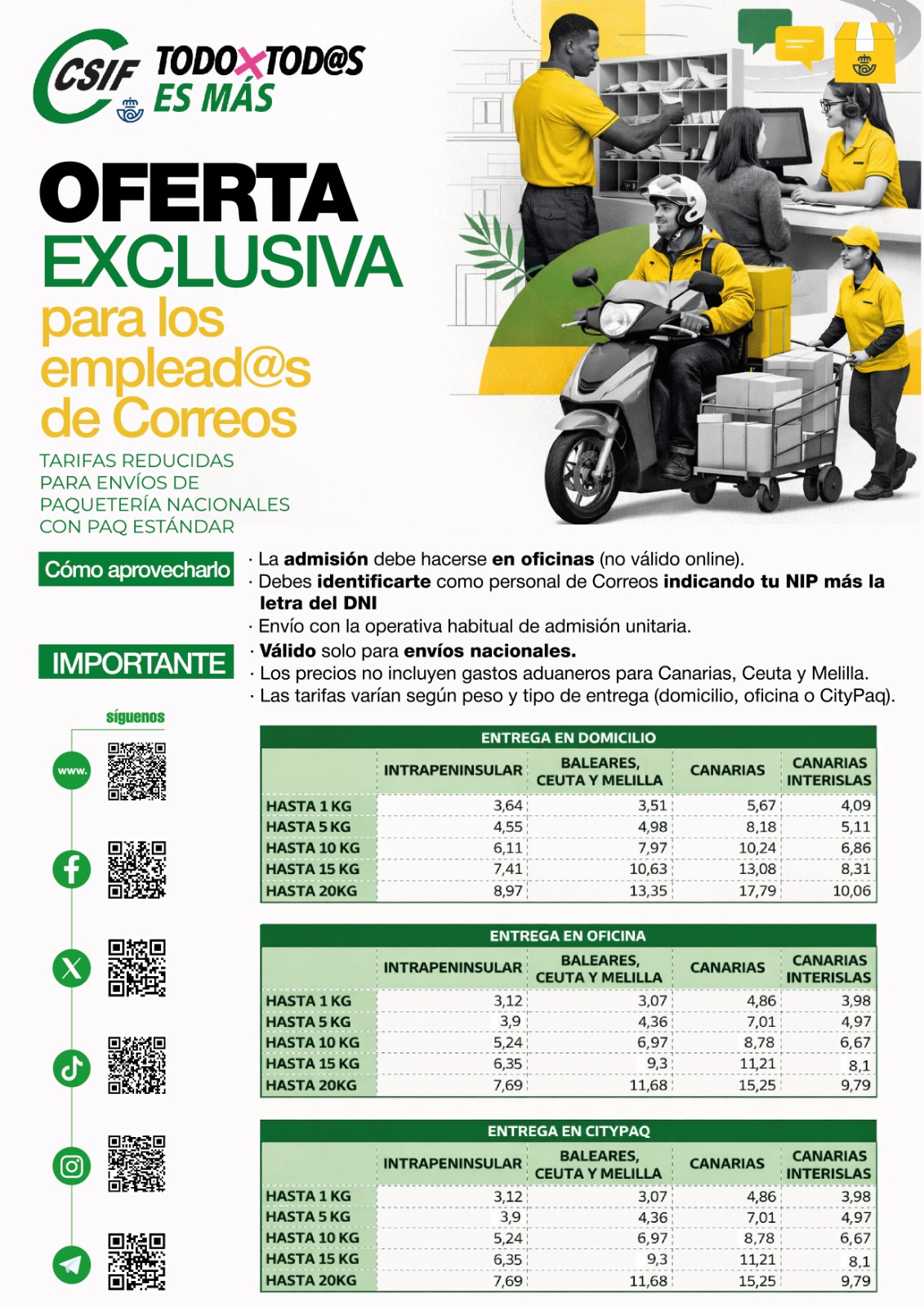 CSIF te recuerda este descuento especial para los empleados/as de Correos