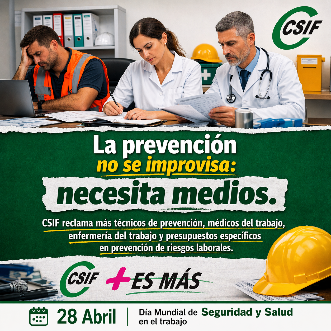 La Central Sindical Independiente y de Funcionarios (CSIF), sindicato más representativo en las administraciones públicas y con presencia creciente en el sector privado, con motivo del Día Mundial de la Seguridad y Salud en el Trabajo, quiere trasladar un mensaje claro y urgente: la salud de las/os trabajadores sigue siendo una asignatura pendiente.