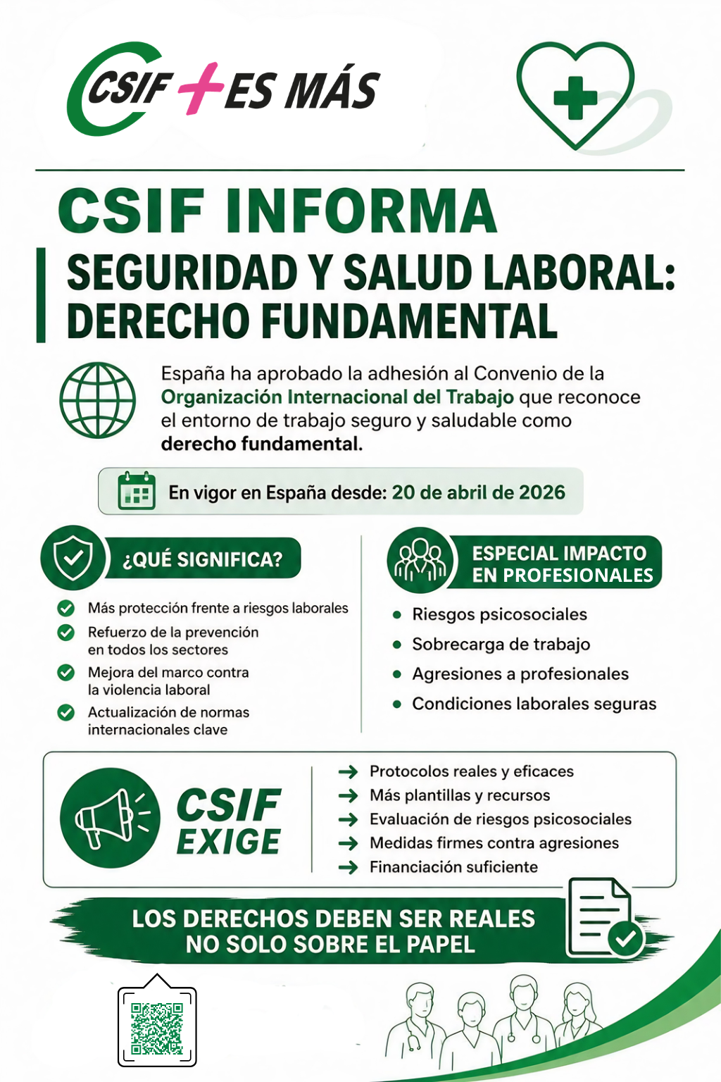 CSIF seguirá vigilante para que este compromiso internacional se convierta en derechos efectivos para los trabajadores y trabajadoras, con mejoras reales en los centros de trabajo y una protección adecuada frente a todos los riesgos laborales.